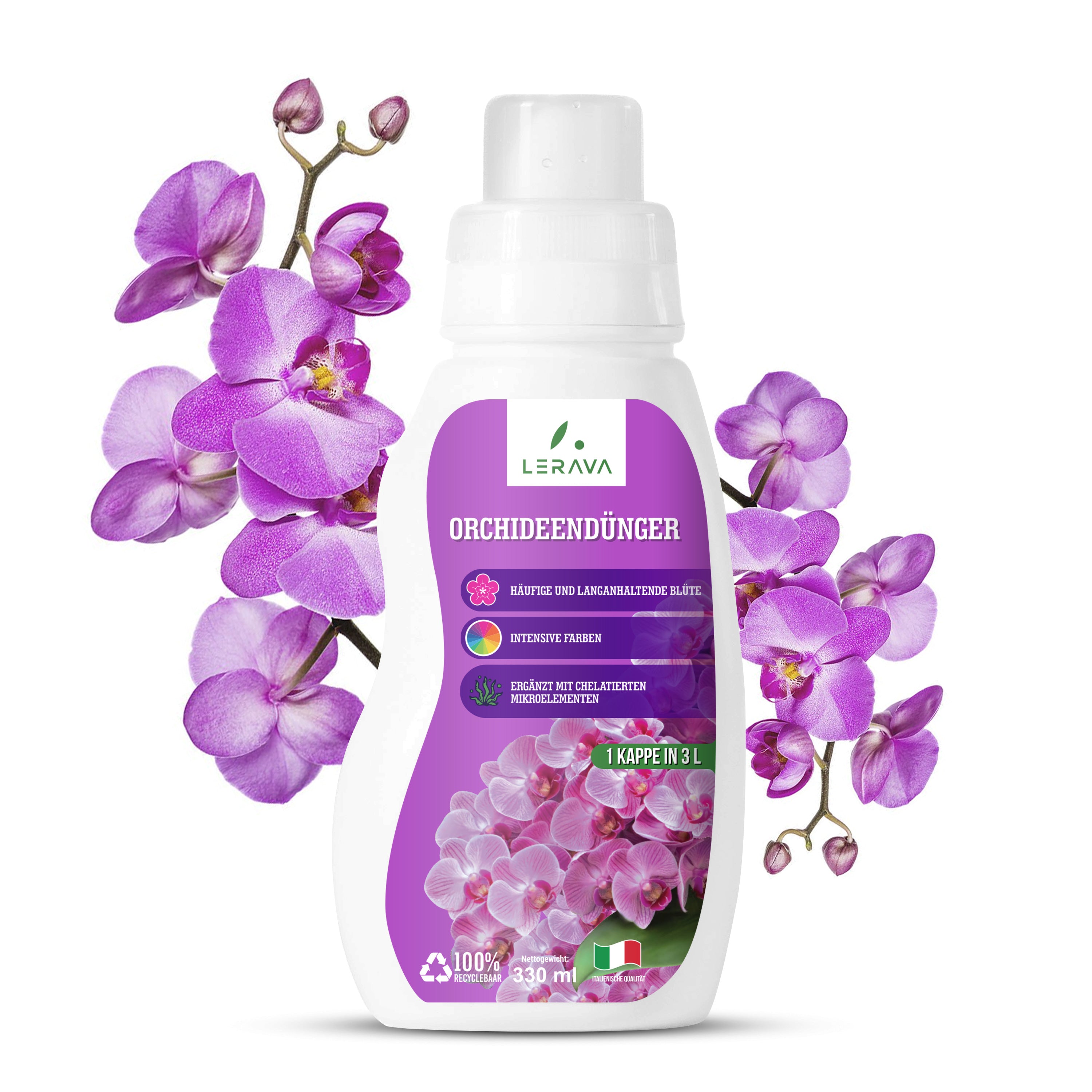 Orchideen sind sehr wählerische und anspruchsvolle Pflanzen, weshalb sie einen Orchideendünger verwenden sollten. In Ausnahmefällen können auch zu handelsüblichen Blühpflanzendünger(z.b. Lerava Flowertabs) greifen, hierbei Menge im Verhältnis 1:10 mit Wasser verdünnen. Auf jeden Fall sollten Sie zu einem wasserlöslichen Düngerprodukt greifen, da die Nährstoffe über die Wurzeln aufgenommen werden. Am besten, Sie mischen den Dünger zum Gießwasser.